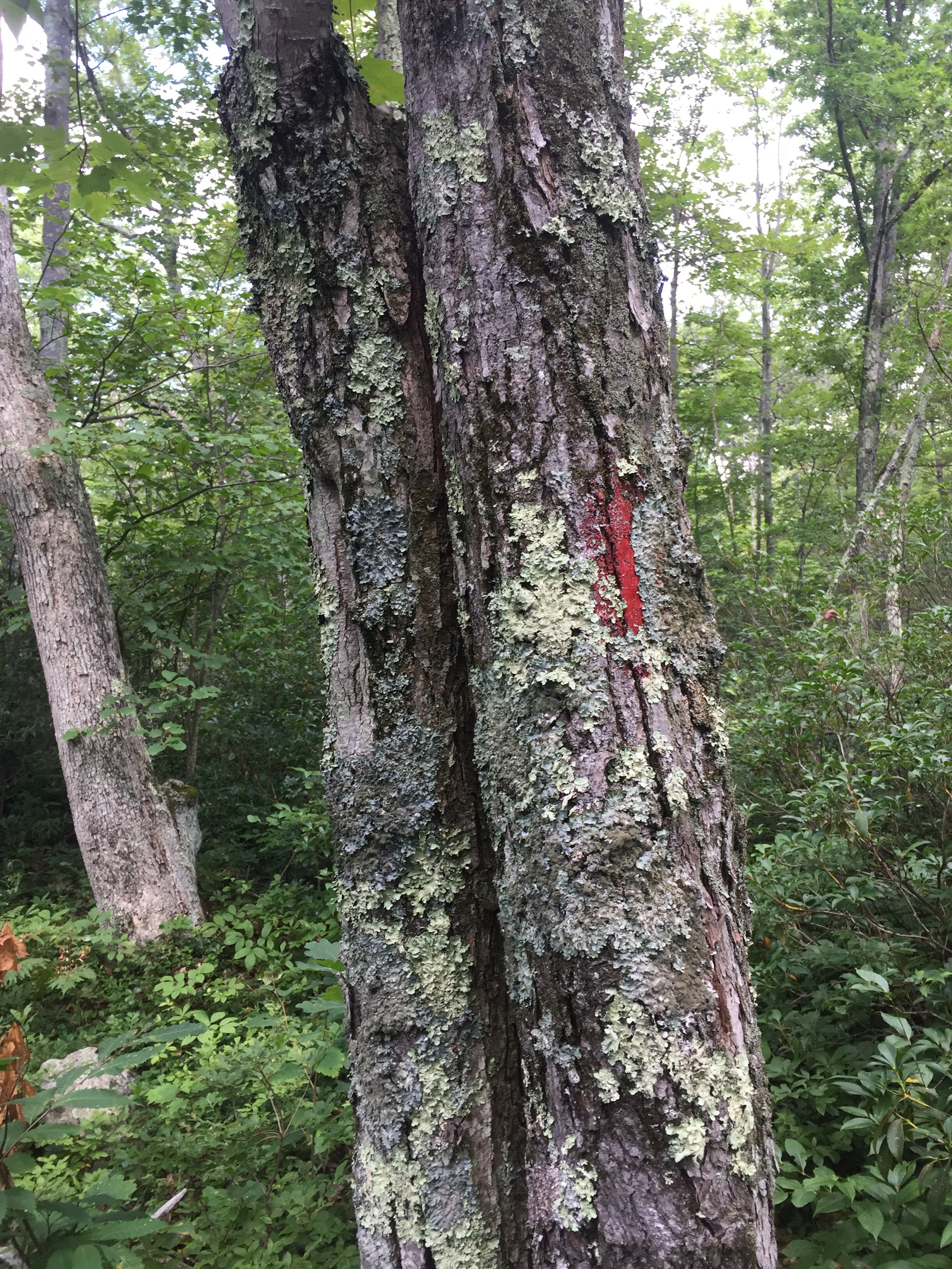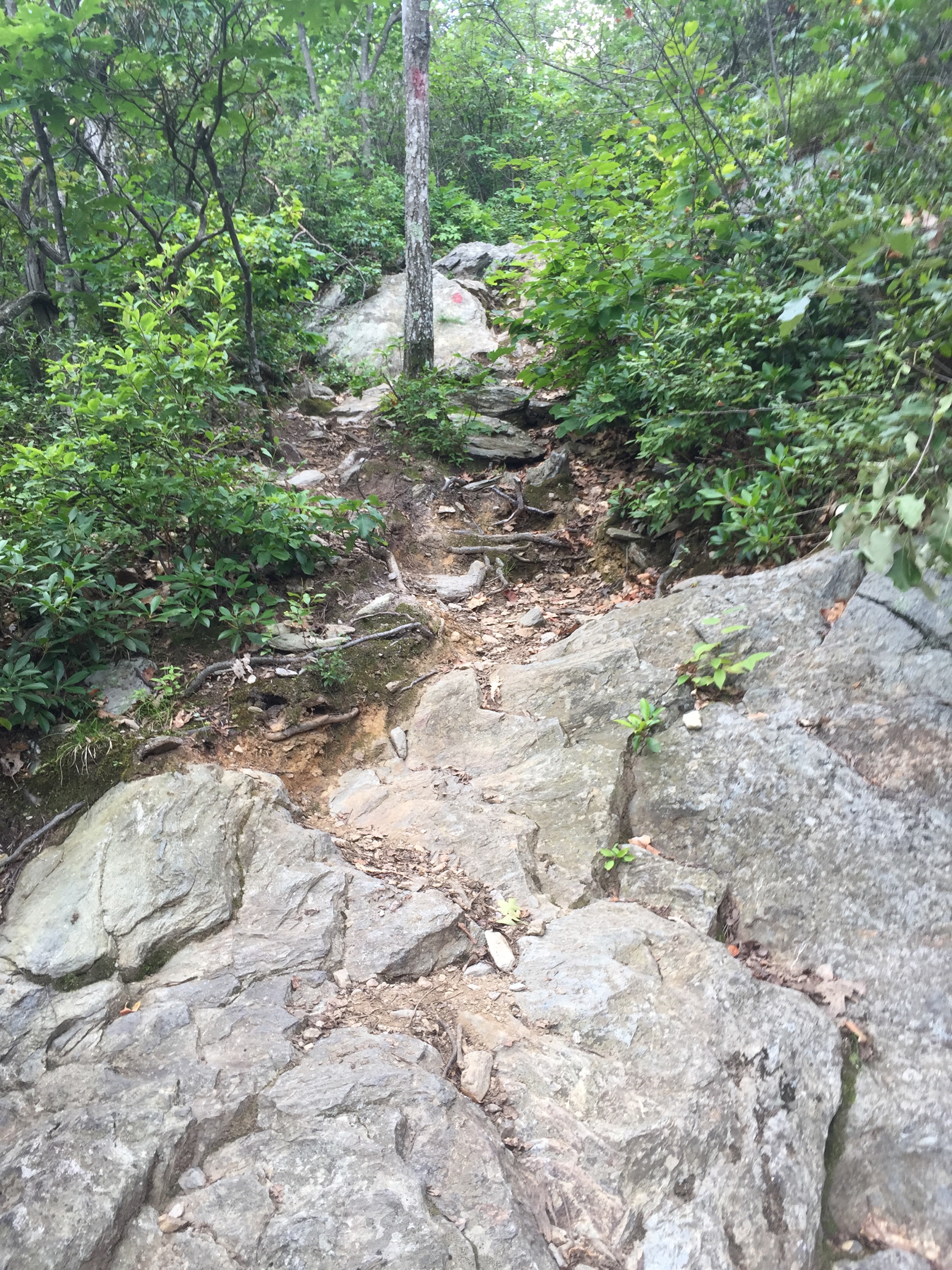 As I was on my way down Round Mtn I ran into a fellow high pointer. He asked me how many I have – 11. How many does he have–oh 37. haha! I’m getting there! He gave me a few words of encouragement and I continued on. Down a few steep sections, back into the heavy vegetation, but you could always see the trail ahead- I was never once worried that I was getting lost – the trail was well marked on trees and rocks, although some blazes were faded, you could still see them.