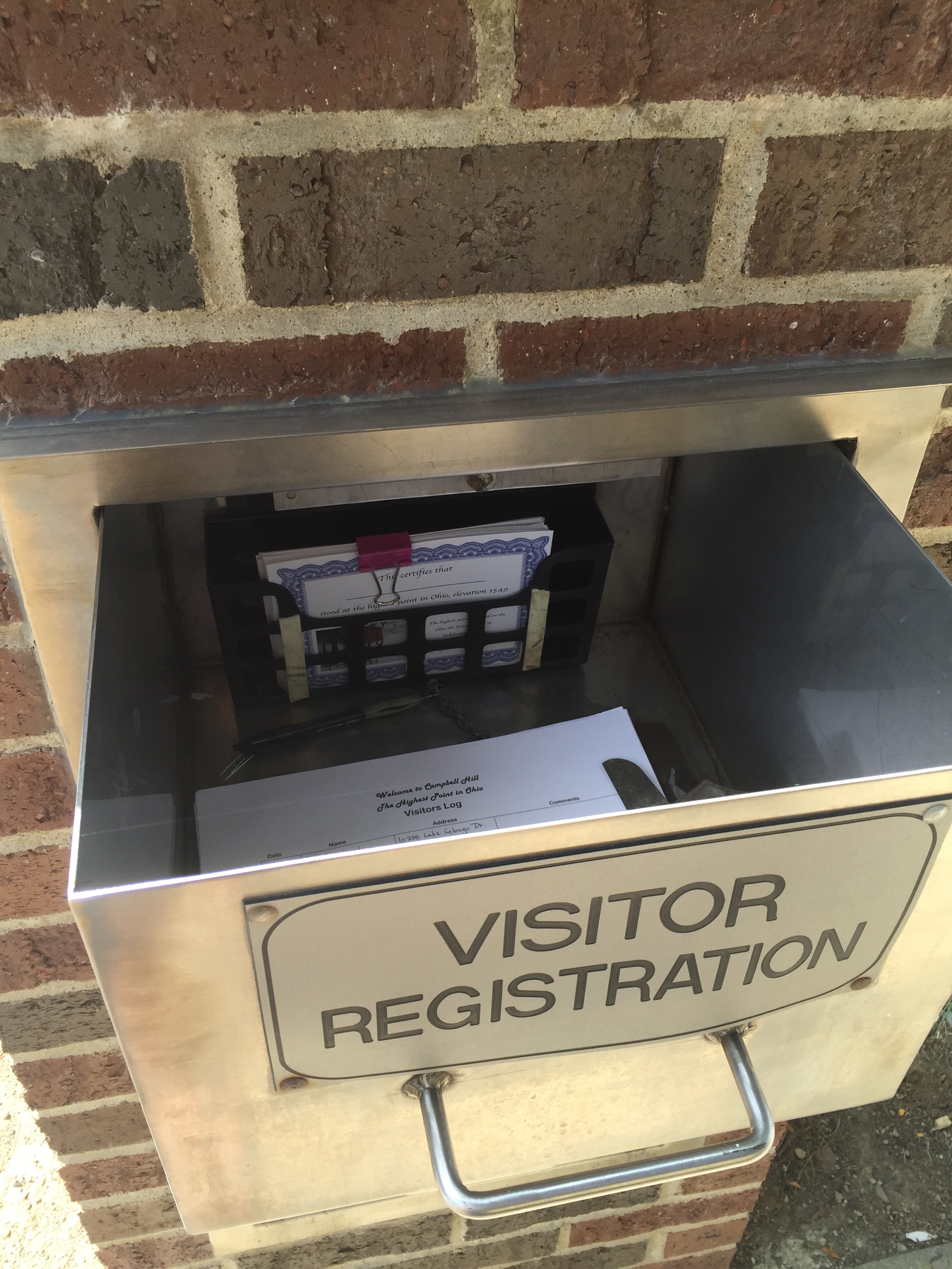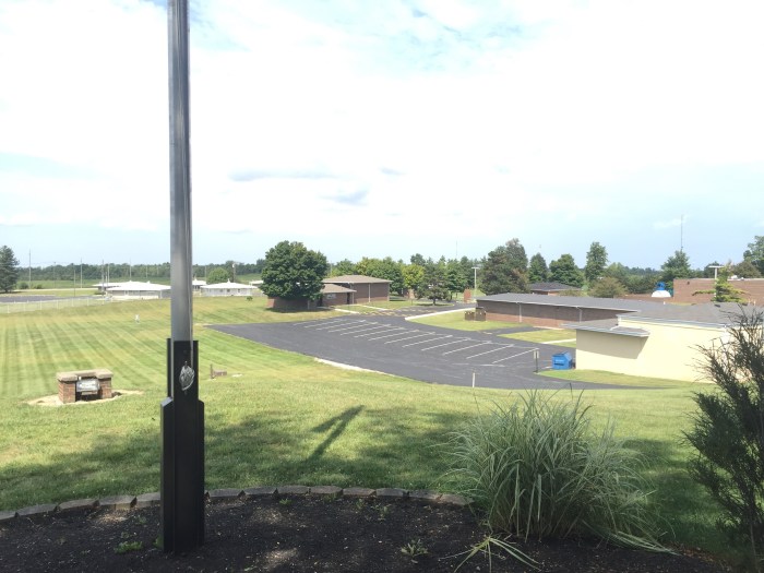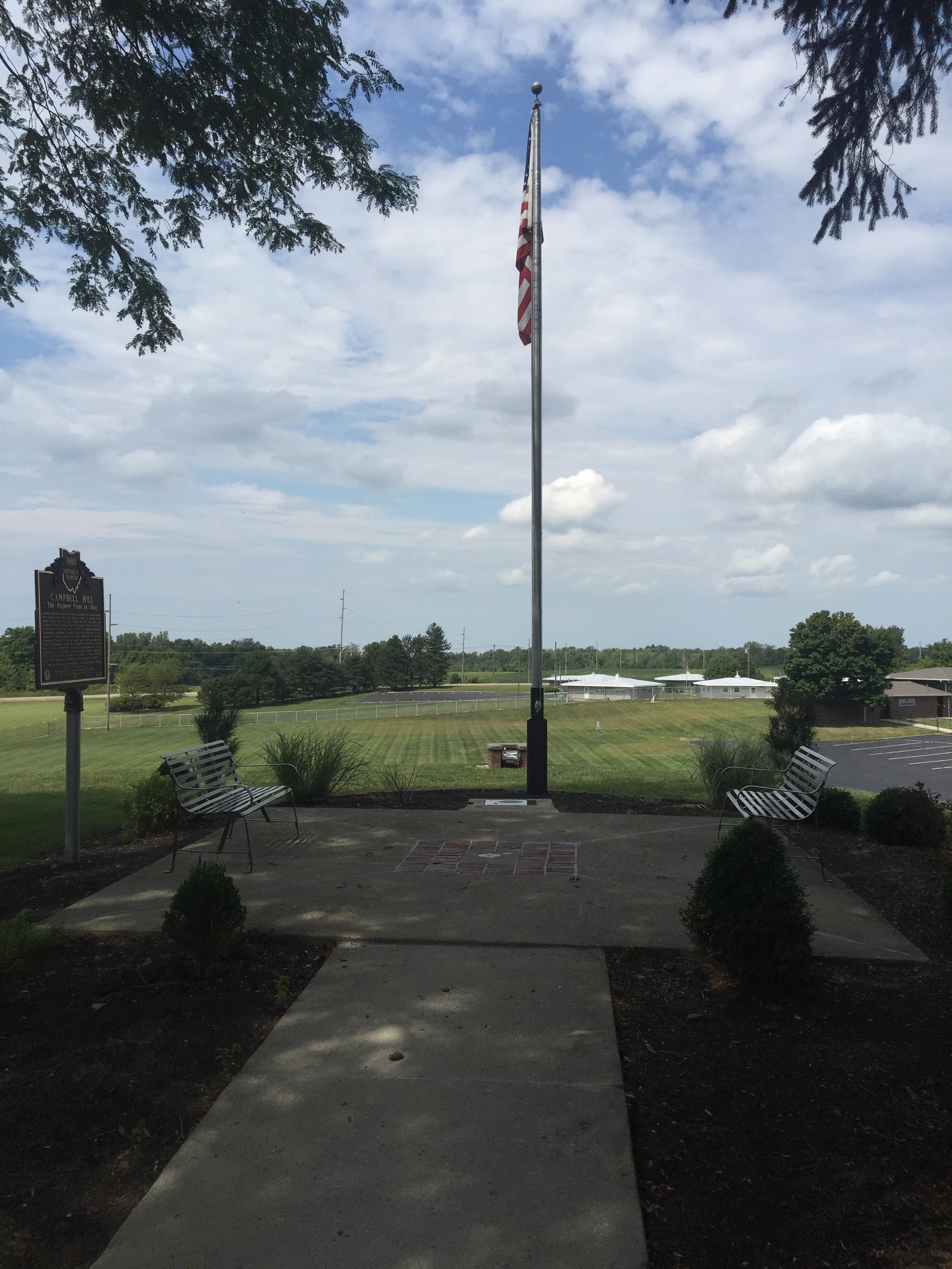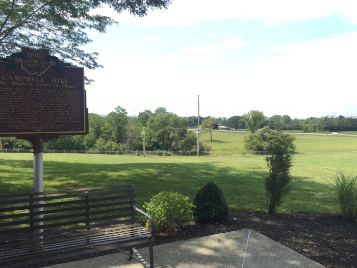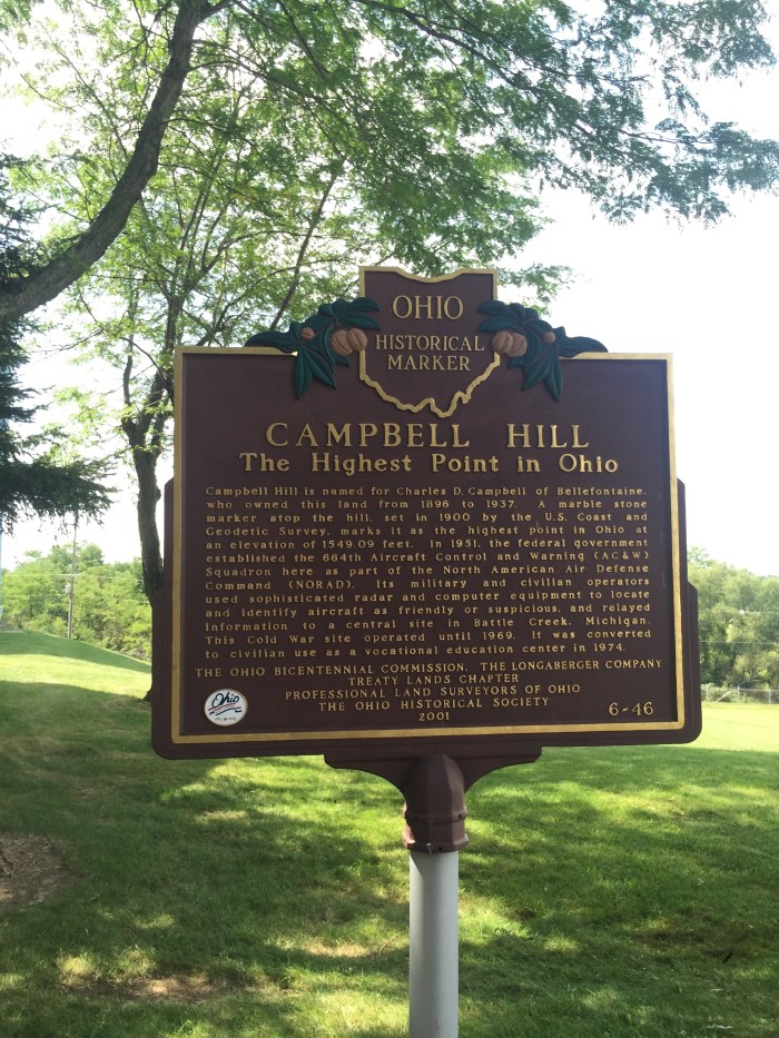 So early Sat am we jumped in the car and headed out west. When we plugged the coordinates into my GPS it said we would arrive a little after 2:30- this made us very nervous because on summitpost.com it says the OH HIGHPOINT is only open until 3. We knew we didn’t have much time to spare. My dad wanted to take the turnpike most of the way but my GPS kept trying to redirect us off the turnpike. “I’M NOT GOING THAT WAY!!!! What is it @!*•! doing!?!???” I said “idk dad but it’s just gonna try to keep redirecting you- do you want me to put it on mute if you know where ur going?” He shouted “I KNOW WHERE I’M GOING TIL I GET THERE!!” Which I thought was hysterical- after a few more times of listing to my GPS say “recalculating” and a few more curse words from my dad, I checked the settings- somehow it was checked to avoid toll roads- ah HA! Problem solved- and it also reduced our driving time and said we should get to Campbell Hill at 1:45- much better!!!