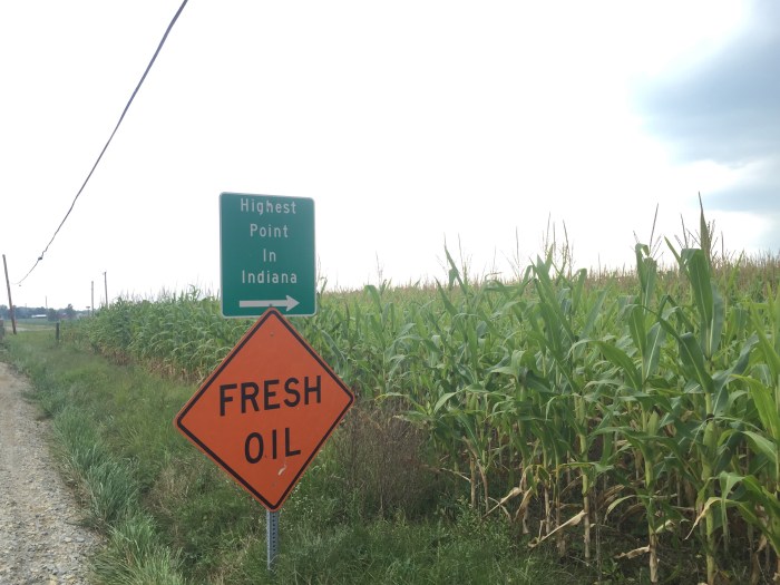 The drive was very pleasant through flat land with some gentle rolling hills – there was corn growing as far as you could see for most of this ride. My GPS took us the back way, which had a few signs to direct us: