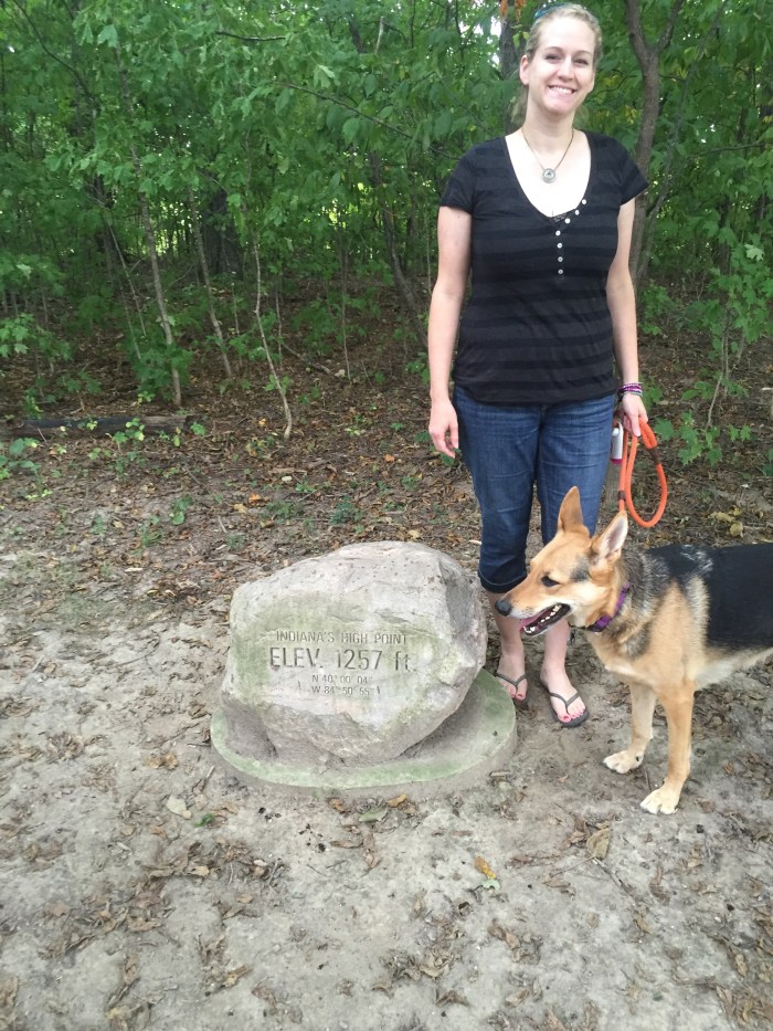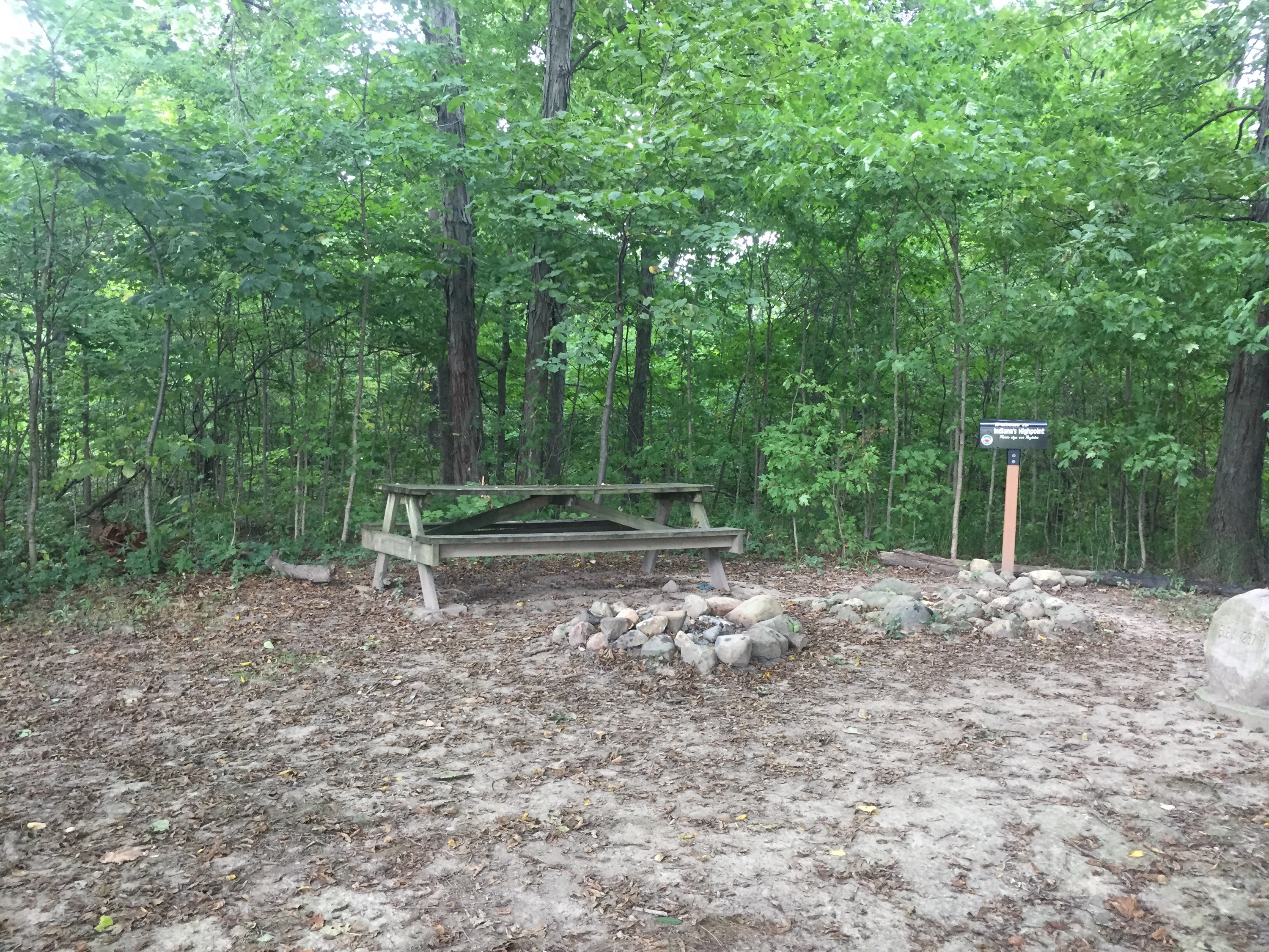 As soon as we get there it started DOWNPOURING! I snapped a few pics and we ran into the woods and up the short path to the highpoint of Indiana- Hoosier Hill! Luckily the trees acted as a sort of natural umbrella! It was a really cute little area that you would never know was there unless you were looking for it.