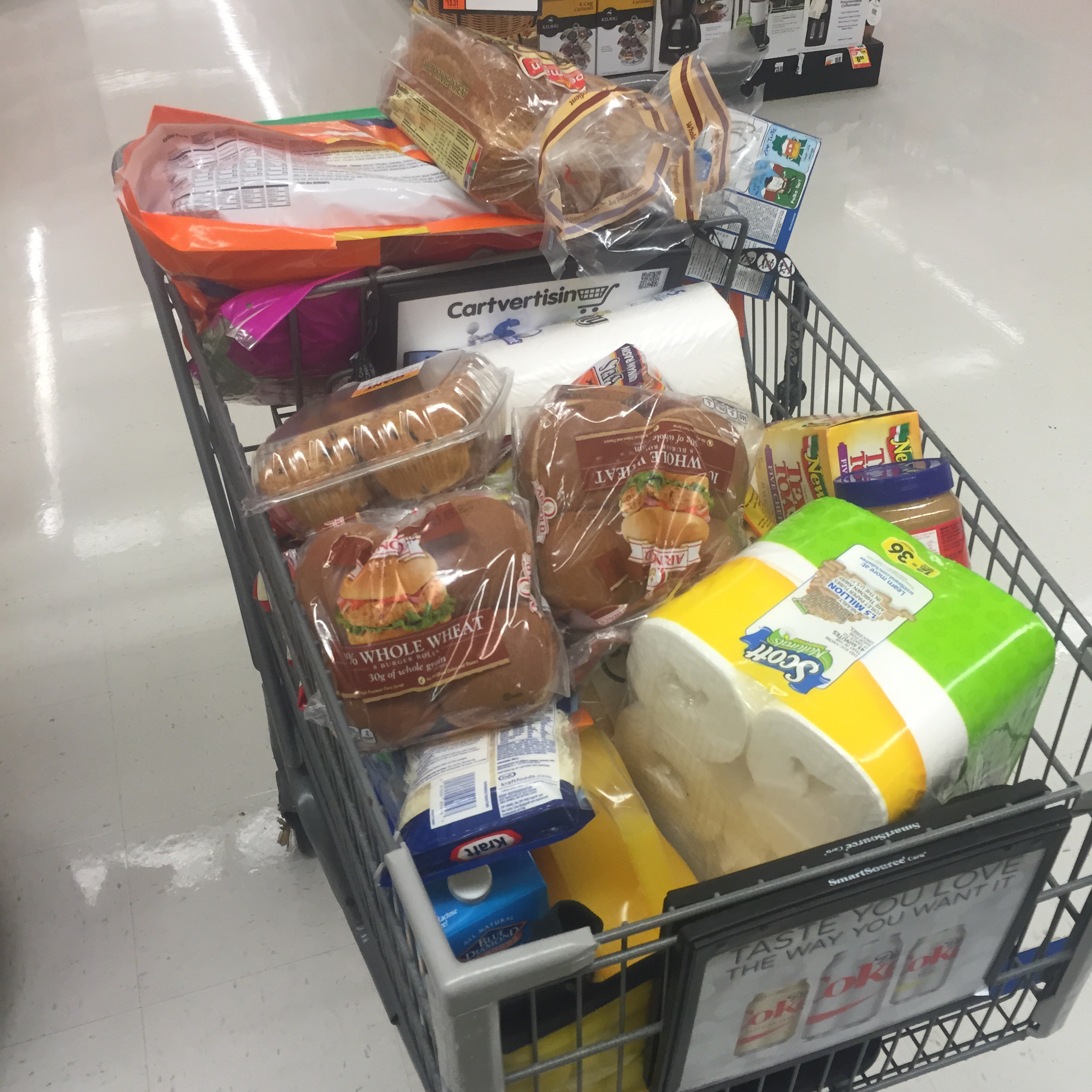 As I was shopping I wondered how much I could actually fit in the DoggyRide? I kept grabbing things off the shelf that I needed and before I knew it I had a full cart. When I got to the check out and looked at my cart, I started to get a bit nervous – what if it didn’t all fit? YIKES! There was nothing I could do about that so I bagged everything I could in the bags I brought with me and in my panniers – I knew I’d have to make some adjustments when I got back to my bike.
