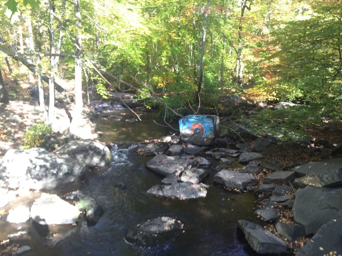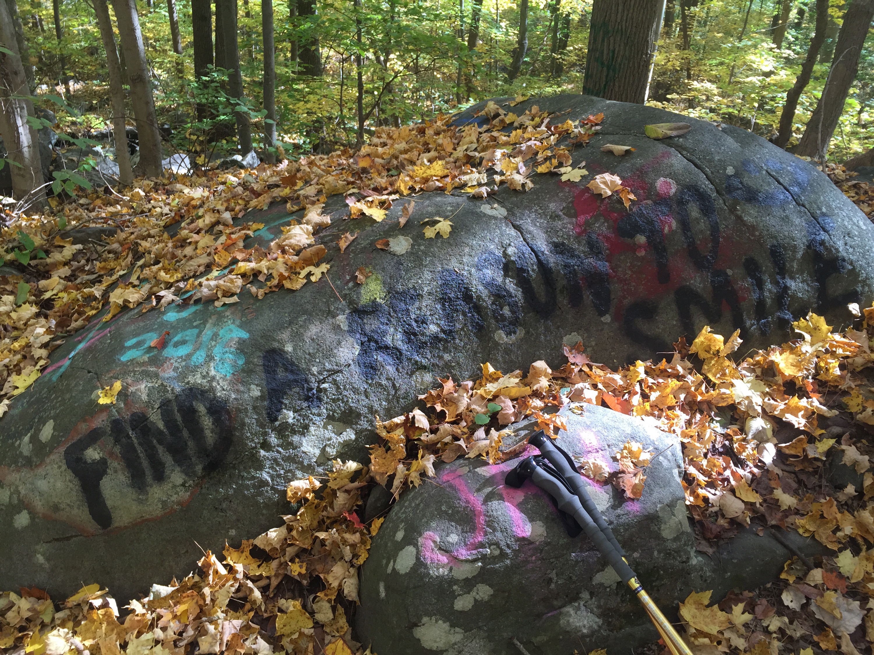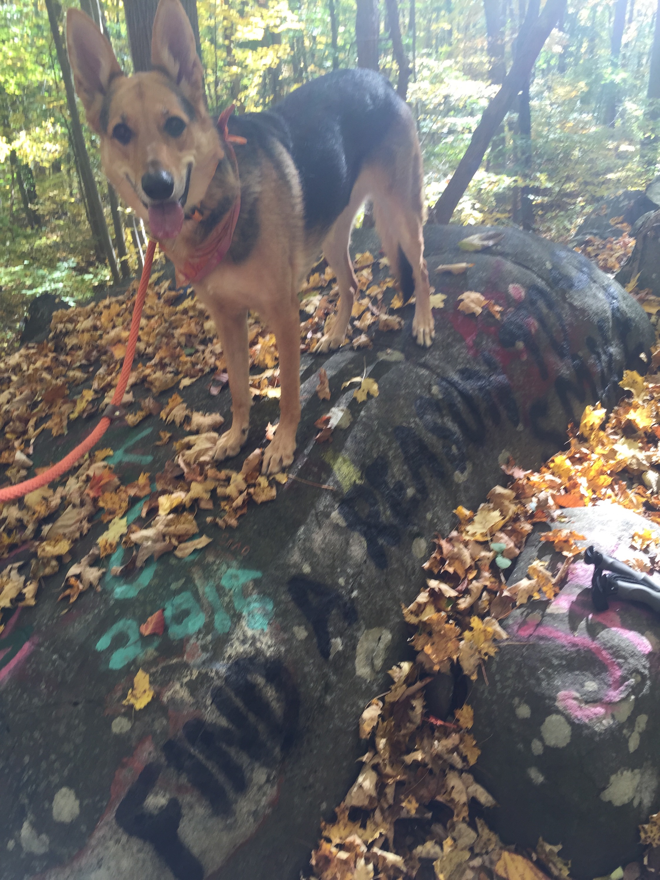 The trails themselves were nice, not very steep. It was pretty rocky in some parts and hard to see those rocks with all the leaves on the trail, but still fun! There is a TON of graffiti on the rocks – I guess you could use this as trail markings to find your way back if you got lost.